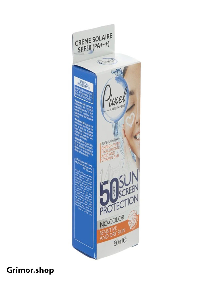 کرم ضدآفتاب بی‌رنگ پیکسل SPF50 مدل Sensitive، مناسب پوست‌های خشک و حساس، حجم 50 میلی‌لیتر